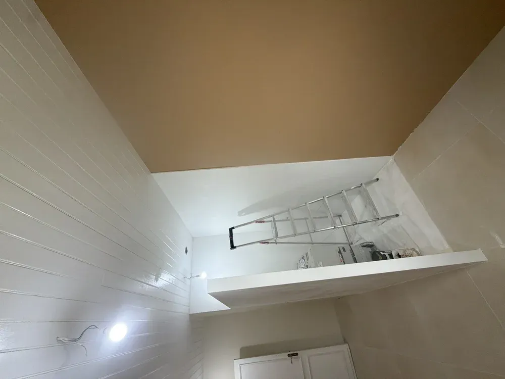 Notre équipe a pris en charge la rénovation complète d'une salle de bain, en commençant par un enduisage minutieux des murs pour assurer une surface lisse et prête à recevoir une nouvelle couche de peinture. Le client a choisi une peinture velours haut de gamme pour les murs et les plafonds, garantissant une finition élégante et durable.
